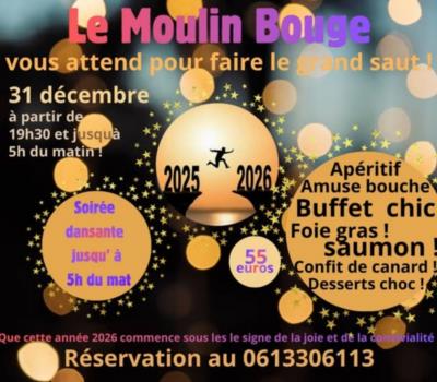 Venez fêter la nouvelle année accompagnée d'un beau buffet et de musique pour vous faire danser jusqu'au petit matin.