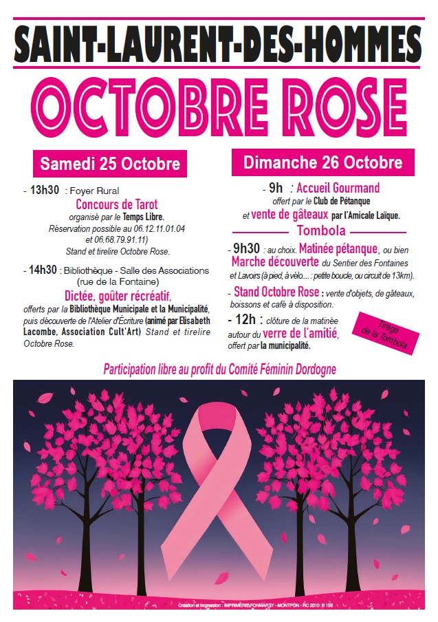 Octobre rose Le samedi 25 octobre 2025 24400 SAINT-LAURENT-DES-HOMMES ![]() |