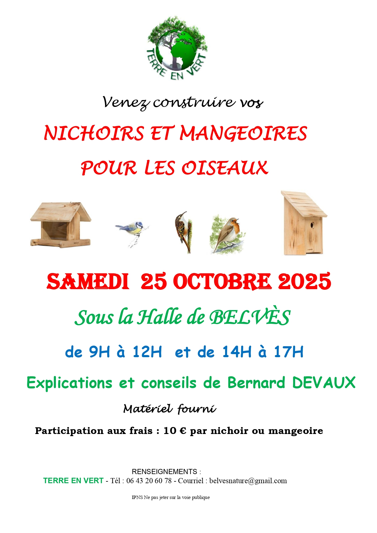 Venez construire vos nichoirs et mangeoires pour les oiseaux Le samedi 25 octobre 2025 24170 PAYS DE BELVES Tél : +33 6 43 20 60 78