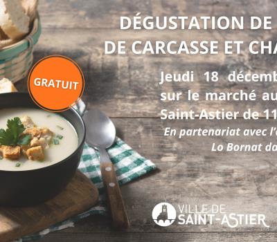 Dégustation gratuite et de toasts de soupe de carcasse et de chabrol offert par la Mairie e Saint-Astier.