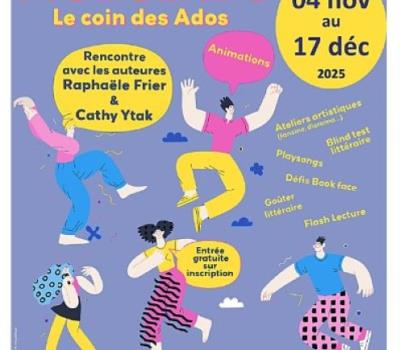 Mais aussi des rencontres avec les auteures Raphaële Frier et Cathy Ytak. Ainsi que des animations : Ateliers artistiques (fanzine, diorama..), Playsongs, Blind-test littéraire, Défis Book face, Flash lecture, Goûter littéraire. Accès libre et gratuit + sur inscription pendant les animations. Gratuit