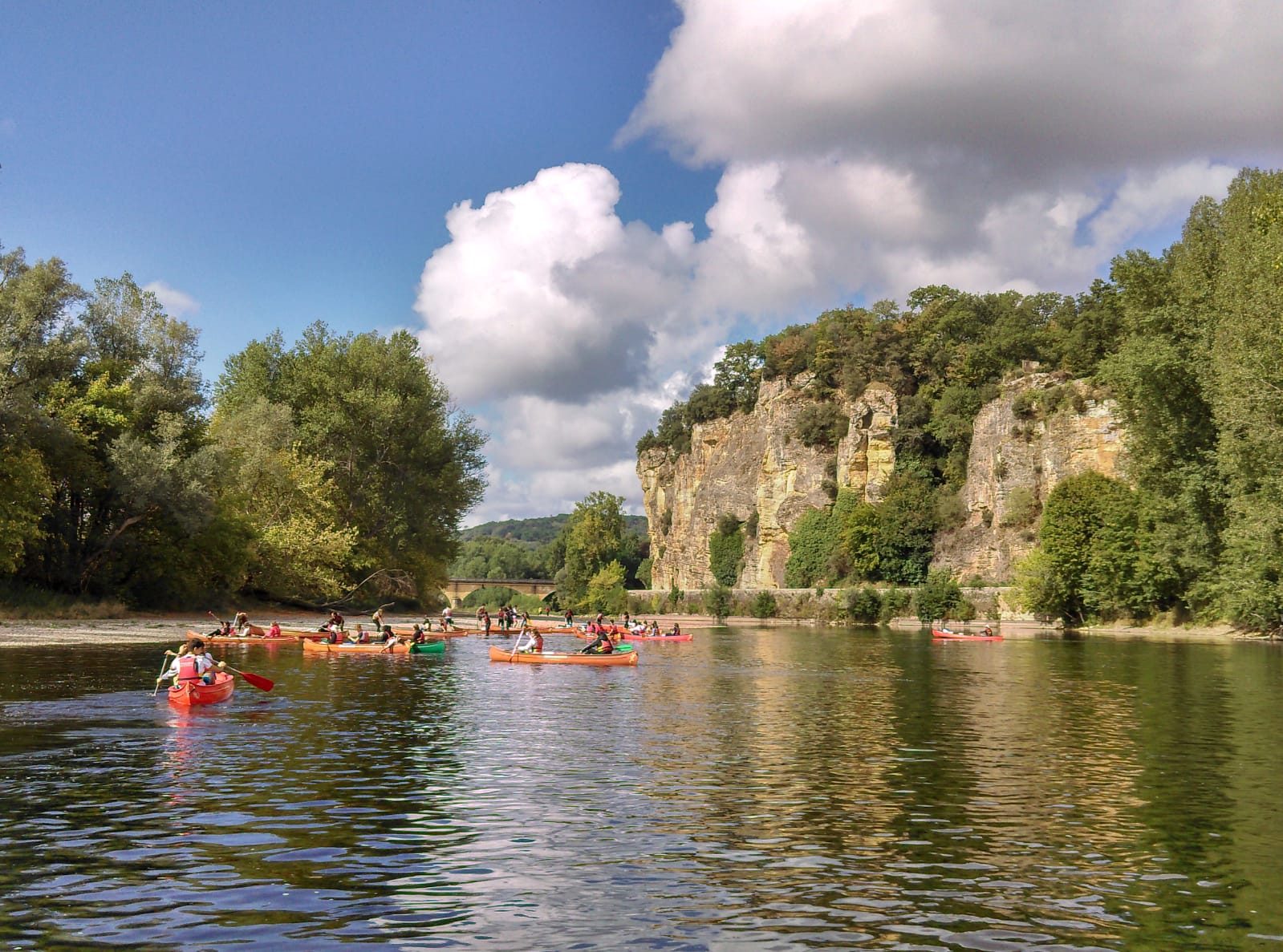 À environ 10 km au sud de Sarlat, la base de canoë-kayak de Couleurs Périgord vous attend au pont de Fayrac, dans la vallée de la Dordogne. D’ici, débutant ou pratiquant confirmé, vous pouvez faire de l’escalade (« falaise-école » ou sites naturels du secteur), de la spéléologie ou encore du canoë sur cette majestueuse rivière, accueillante même pour les débutants et les familles avec enfants de plus de 6 ans, à condition que chacun sache nager.