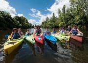 Pour une ou quelques heures, la journée ou encore plusieurs jours, revenez à la rame dans votre canoë 2 ou 4 places ou votre kayak. Côté Vézère, laissez-vous séduire par les Eyzies et les sites préhistoriques ; côté Dordogne, la vallée aux 1001 châteaux vous enchante. Après l'effort, le réconfort : prenez un verre en terrasse du snack-bar de la base ou régalez-vous d'un panier pique-nique périgourdin. Vos enfants, eux, se défoulent en sautant sur Tobba la Girafe, la star de l'aire de jeux. |