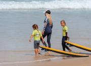 Les stages "crevettes " sont accessibles aux plus jeunes dès 4 ans. Pour junior et ses parents, des cours individuels de surf, de body-board et de long-board, sont proposés sous forme de stages de 2 jours en week-end ou de 5 jours sur une semaine. Pour ceux qui n'ont pas d'hébergement sur place, le club organise des surf camps de 2 à 6 jours. Un grand choix de planches et de combinaisons sont mis à disposition dans le cadre des cours dispensés par le club. |