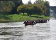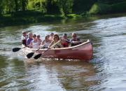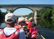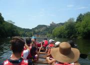 Venez naviguer sur la Dordogne à bord d'un canoë Rabaska d'inspiration amérindienne. Ce bateau, de 9 m de long sur 1,40 m de large, peut transporter en toute sécurité 15 personnes (accessible aux handicapés). Conduit par un guide de rivière (moniteur diplômé d'Etat), vous découvrirez la rivière Dordogne grâce à "La randonnée des châteaux en pays Foyen". Vous partirez du quai de Port-Sainte-Foy pour un parcours de 12 km longeant des sites et des plages qui invitent à la baignade. Le guide vous contera l'histoire et la vie de la vallée jusqu'à l'arrivée au quai de Pessac-sur-Dordogne. Le retour à Port-Sainte-Foy est assuré en minibus. La promenade peut durer de 2 à 3 heures à une journée.