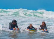 Entre forêt et océan, l'école Surfescapade vous accueille sur un des spots mythiques de la côte sud des Landes. Sur le site de la plage du Métro de Tarnos, nous vous proposons des cours (initiation et perfectionnement) de surf et bodyboard, pour tous niveaux dès 7 ans. Stages pour particuliers, groupes, scolaires, centres de loisirs, CE. Initiations pour personnes à mobilité réduite. Possibilité de location de matériel: planche de surf, bodyboard, combinaisons... Venez découvrir l'univers de la glisse de manière ludique. L'activité est accessible à tous. Elle est encadrée par des moniteurs diplômés d'état. L’école est labellisée école du surf français (SNEFS). Réservation via internet ou téléphone. Point d'accueil ouvert du 1/04 au 12/11 à l'entrée du village vacances La Forêt des Landes. Possibilité d'hébergement sur site pour votre séjour. Le tarif comprend: le cours et le matériel.