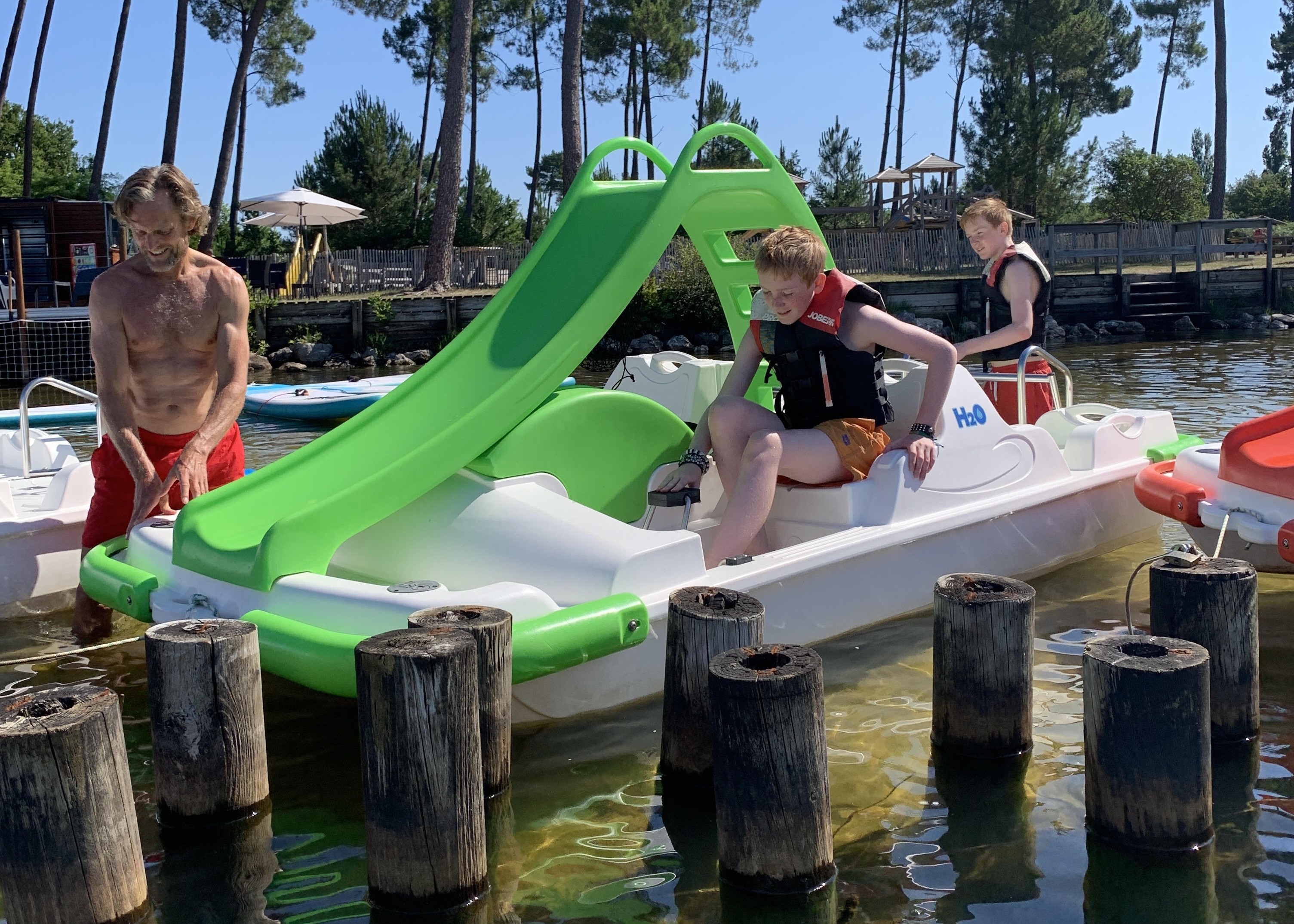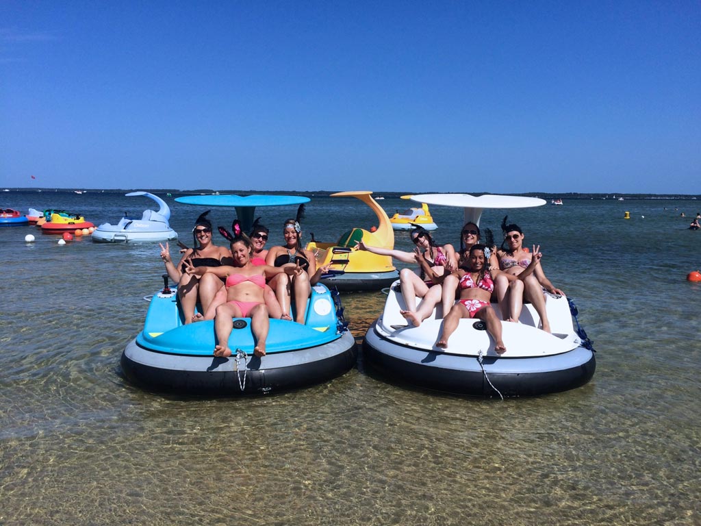Locations de pédalos, d'hydrojets Oxoon, d'engins de plage. Parcours aquatique gonflable.