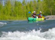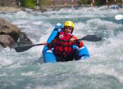 Rafting, nage en eau vive, canoraft, hot dog, kayak gonflable.
