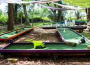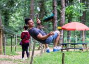 Lacq Aventure est un parcours du type "accrobranche", une activité sportive tout public dans un bois de 6 hectares. A vocation familiale, 9 parcours dans les arbres vous sont proposés avec notamment 6 tyroliennes dont une de 200m à 12m de haut. Lacq Aventure est accessible dès 2 ans pour les tous petits avec un parcours qui leur est réservé. Les parcours "kid 1" et "Kid 2" sont spécialement conçus pour les enfants de 6 à 9 ans alors les ados de 10 à 13 ans pourront s’exercer en plus sur les parcours "blanc" et "Tyrolienne". Le parcours "rouge" est accessible dés 14 ans et le "noir" aux sportifs. |