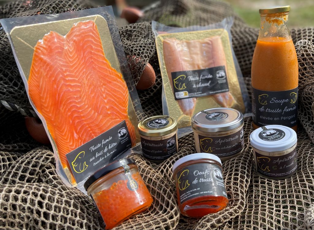 Vente directe à la ferme : truites, saumons de fontaine, rillettes de saumons de fontaine, œufs de truites, truites fumées. Pêche à la truite en étang 1/2 journée et journée. Autre prestation : - découverte nature - pêche à la ligne |