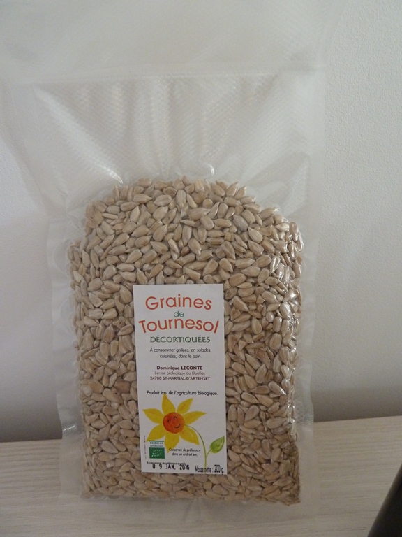Venez découvrir les huiles de tournesol et colza et déguster les graines de tournesol décortiquées à la ferme. |