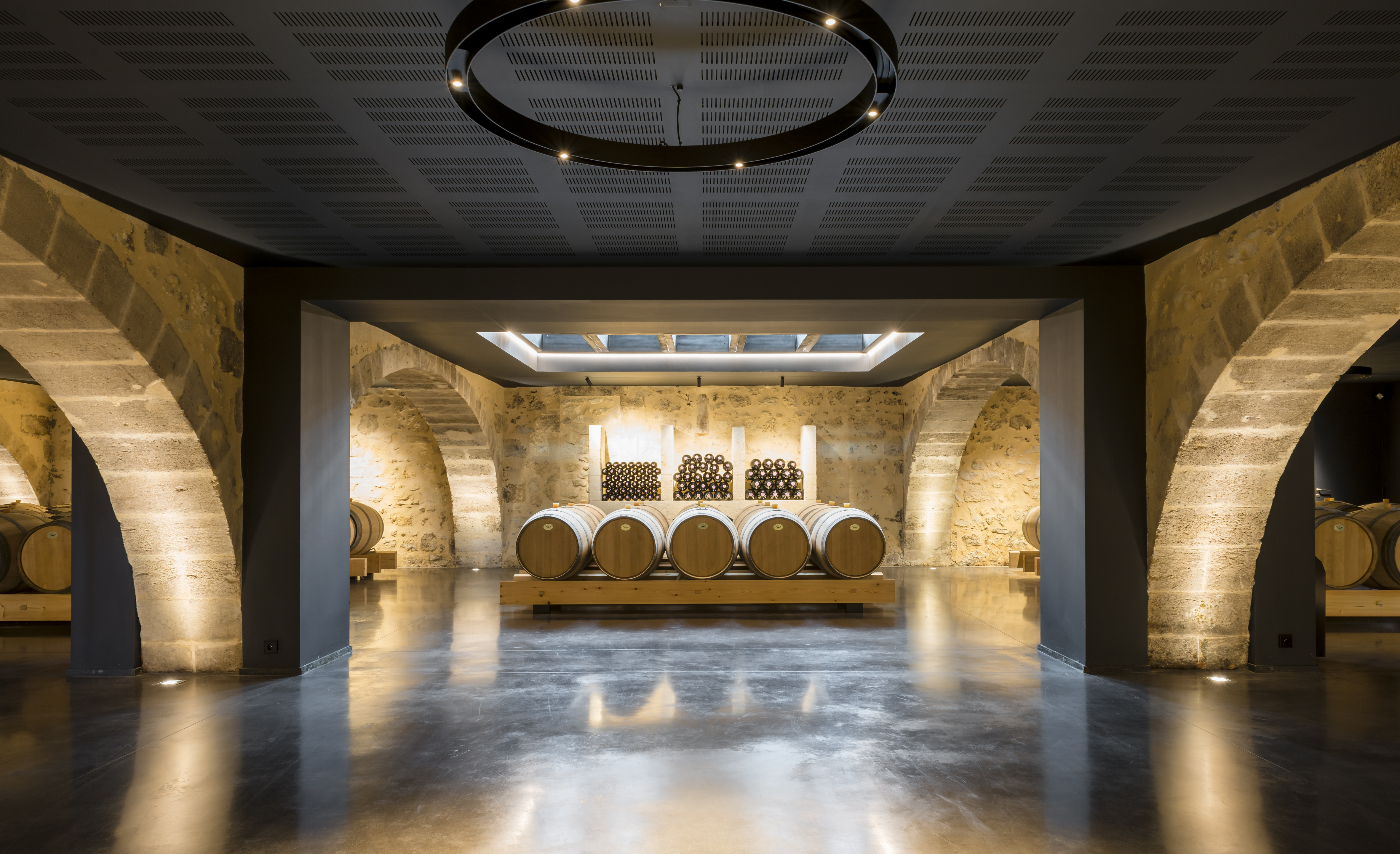 Si l’extérieur respecte un style médocain, les chais récemment construits jouent sur un registre plus contemporain, éclairés par des lumières bleu fluorescent. Permettant de stocker plus de 800 barriques au sol, ils figurent parmi les plus beaux du Médoc. Votre guide vous fait également découvrir l’impressionnant cuvier de quatre niveaux, où les techniques modernes sont au service des traditions régionales. |