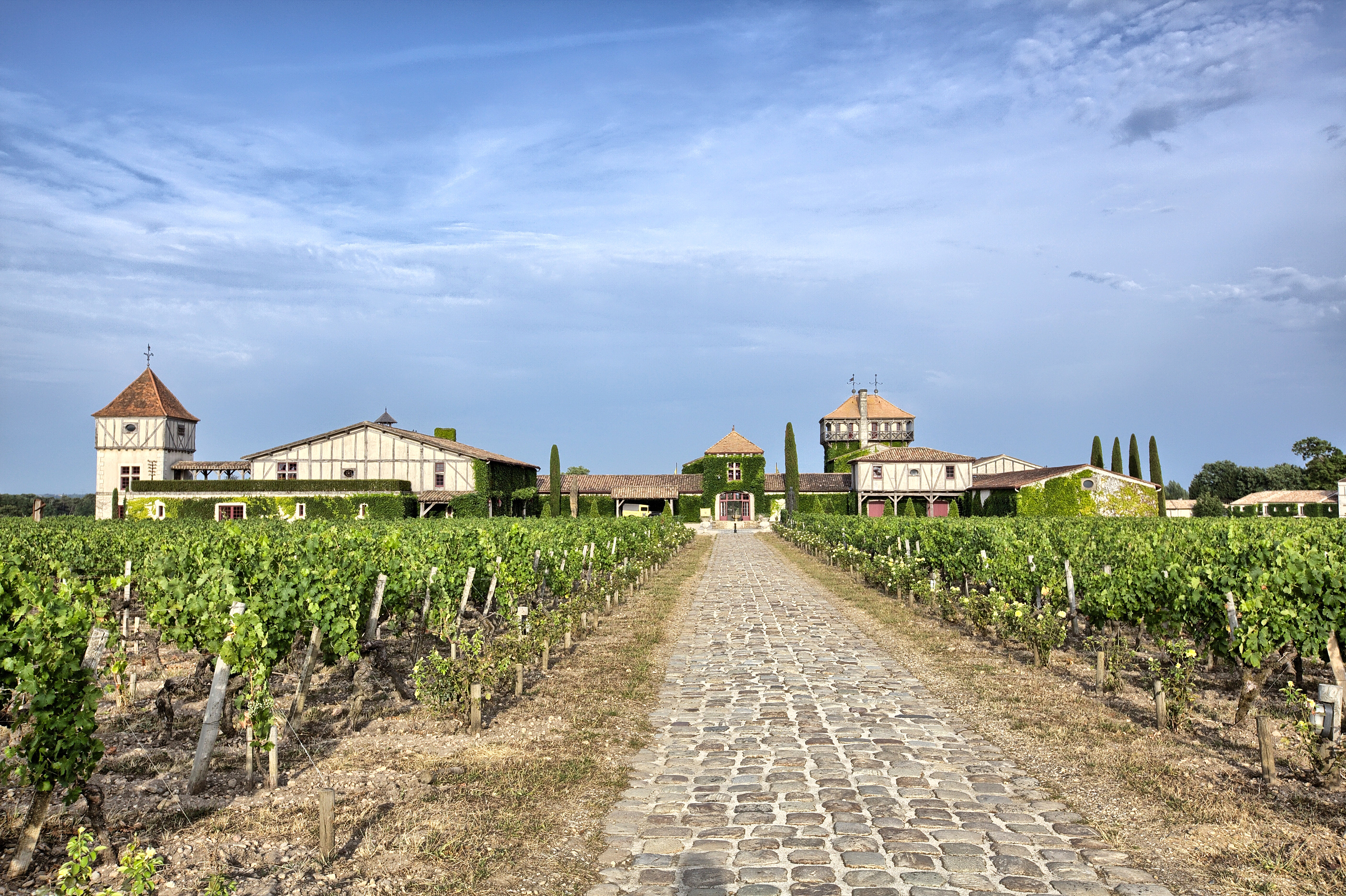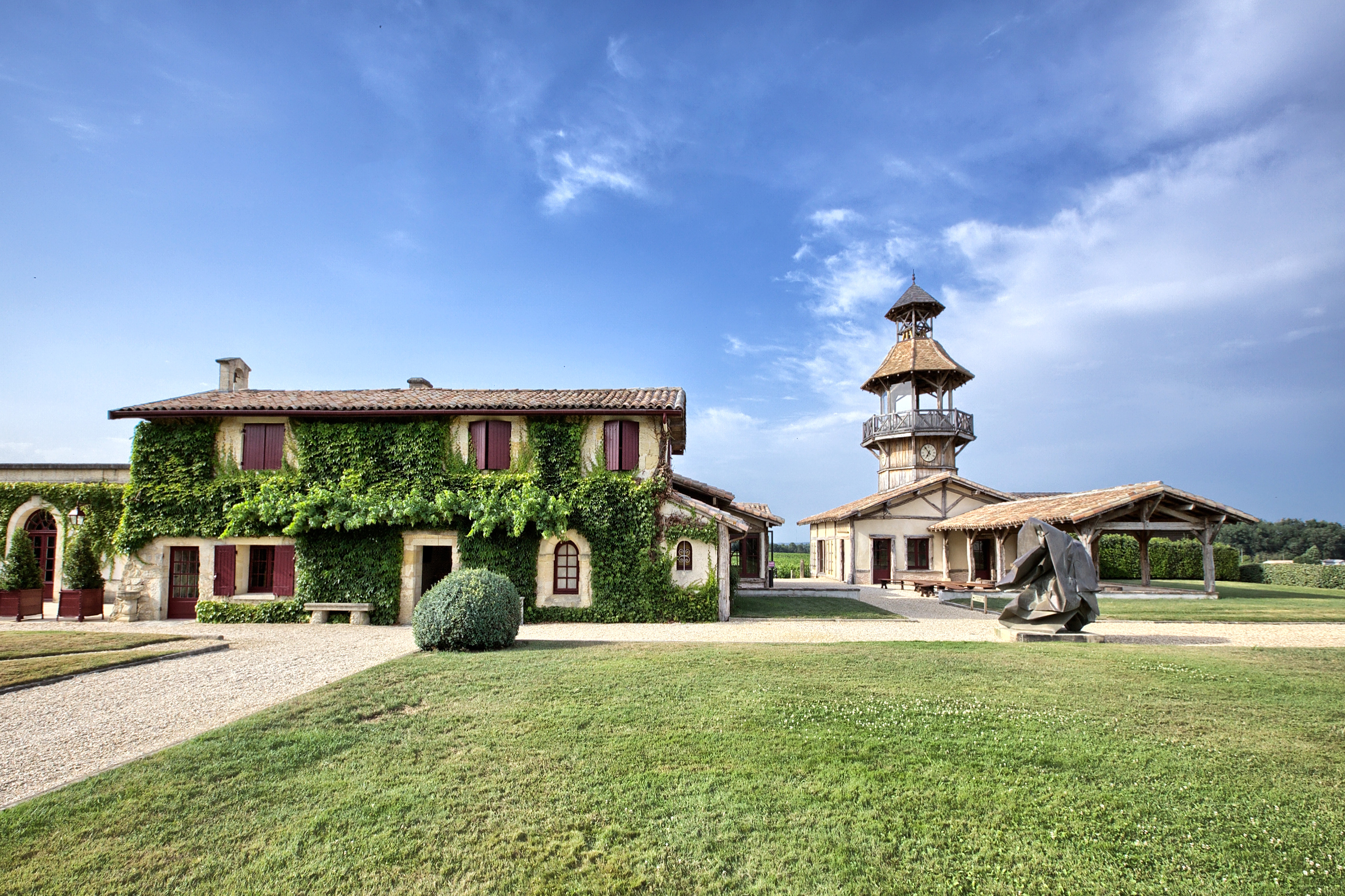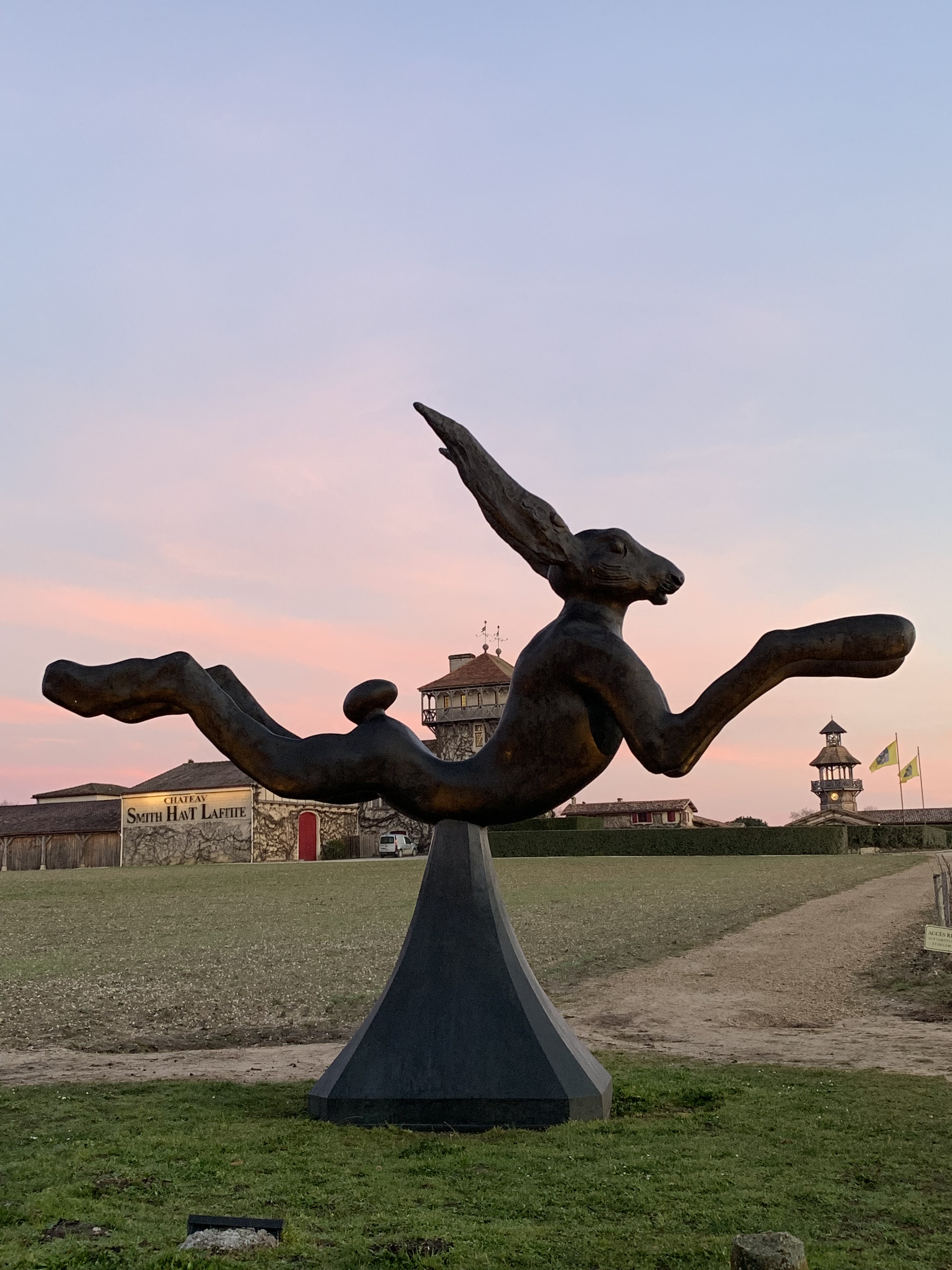 Racheté en 1990 par Daniel et Florence Cathiard, le Château Smith-Haut-Lafitte est un domaine unique par son histoire, son terroir et son style architectural. À 10 km au sud de Bordeaux, il se distingue par ses façades à colombages et ses deux tours. qui dominent les 67 hectares du vignoble alentour. Le lièvre du sculpteur irlandais Barry Flanagan vous accueille, tout comme de nombreuses autres sculptures contemporaines d'artistes internationaux disséminées sur la propriété.