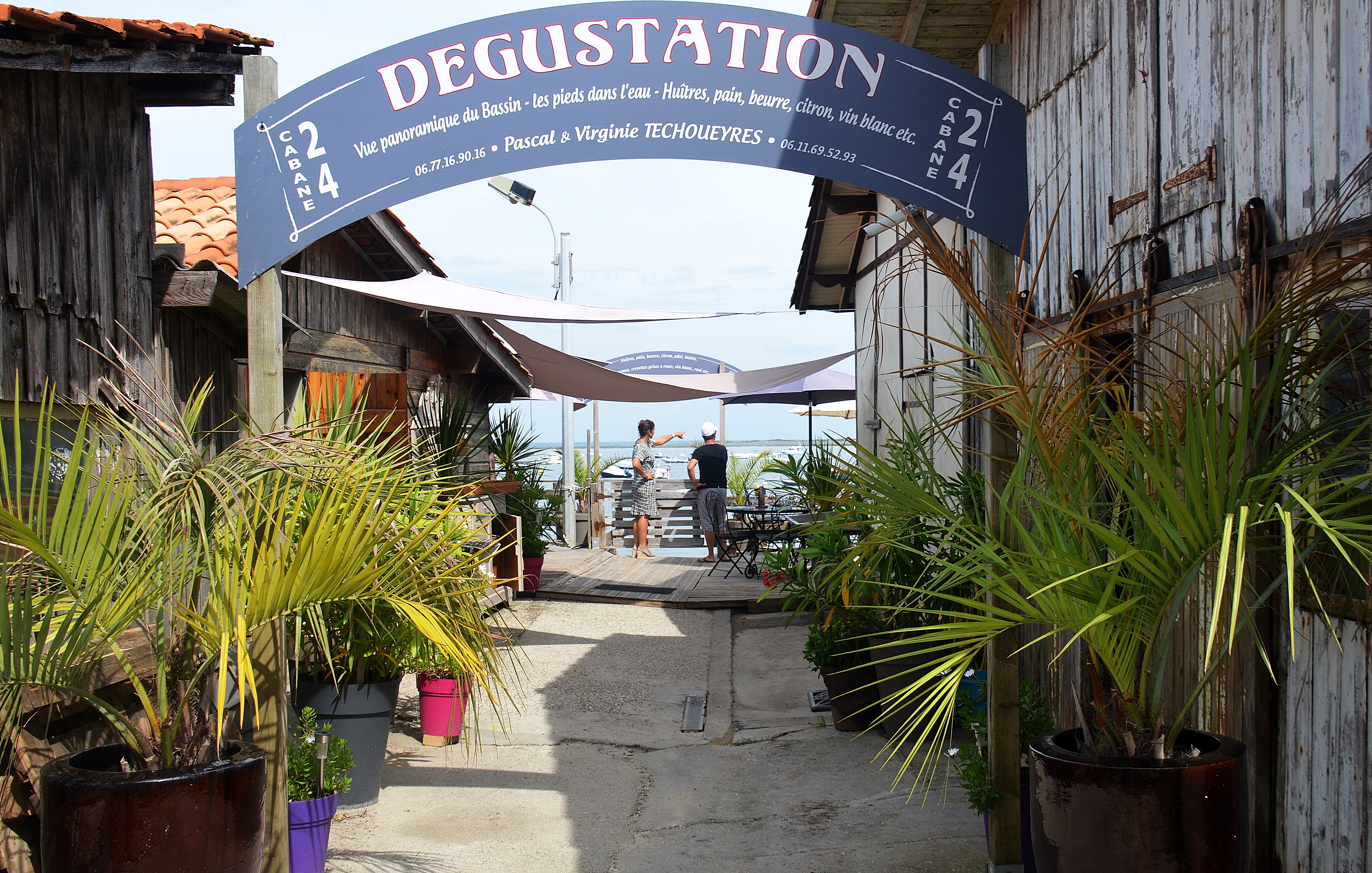 Pascal et Virginie Techoueyres vous accueillent, d'avril à septembre, dans leur établissement situé au coeur du village ostréicole de Piraillan sur la Presqu'île de Lège-Cap Ferret. Dégustation à la cabane : accompagnée de citron, pain beurre et servie avec un verre de vin blanc frais de Bordeaux, l'huître exalte toutes les saveurs ! |