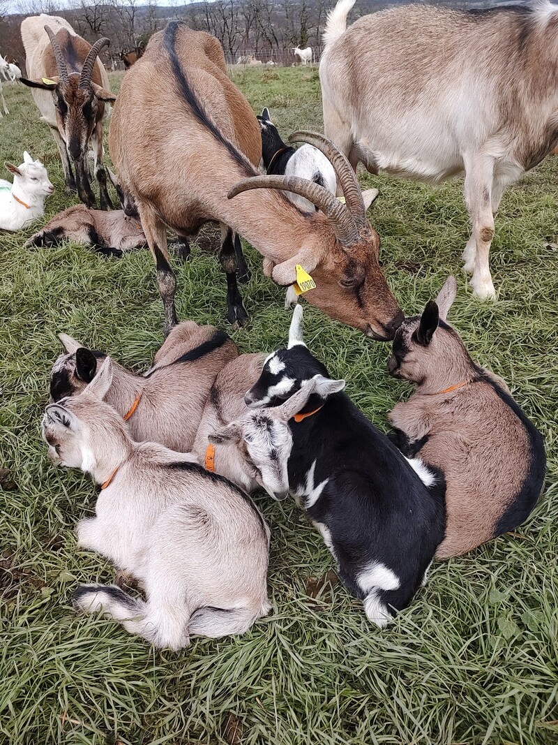 Sur son exploitation, Muriel élève des chèvres alpines et nubiennes et fabrique une large gamme de produits au lait cru : fromage blanc, frais, faisselle, cabécou, bûche, cendré et tome de chèvre ainsi que des confitures aux fruits et baies sauvages.