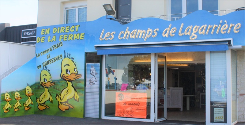 La Ferme des Champs de Lagarrière, entreprise familiale, est située à Mansonville, petit village du Tarn et Garonne. Toute la fratrie de la famille Candelon s'est spécialisée dans l'élevage et la conserve du canard mulard. Christophe est spécialisé dans l'élevage, Thierry dans les plats cuisinés en conserverie, Didier et Sébastien dans le gavage et Sylvie a le côté commercial. Ils travaillent maintenant sur la gamme complète, depuis le petit caneton d'un jour jusqu'au produit fini vendu frais ou sous forme de bocaux et boîtes. Ils proposent des confits, des plats cuisinés, des foies gras en bocaux et en conserve. Leurs produits sont commercialisés soit directement à leur ferme, par correspondance grâce à leur site internet ou dans leur magasin de Boé.