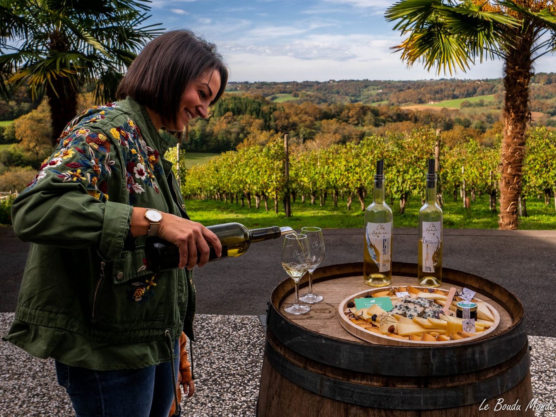 A l'entrée de Monein, sur les coteaux dominant le centre du village et l'église St Girons. Le Clos Laplume est un domaine traditionnel entouré de vignes.