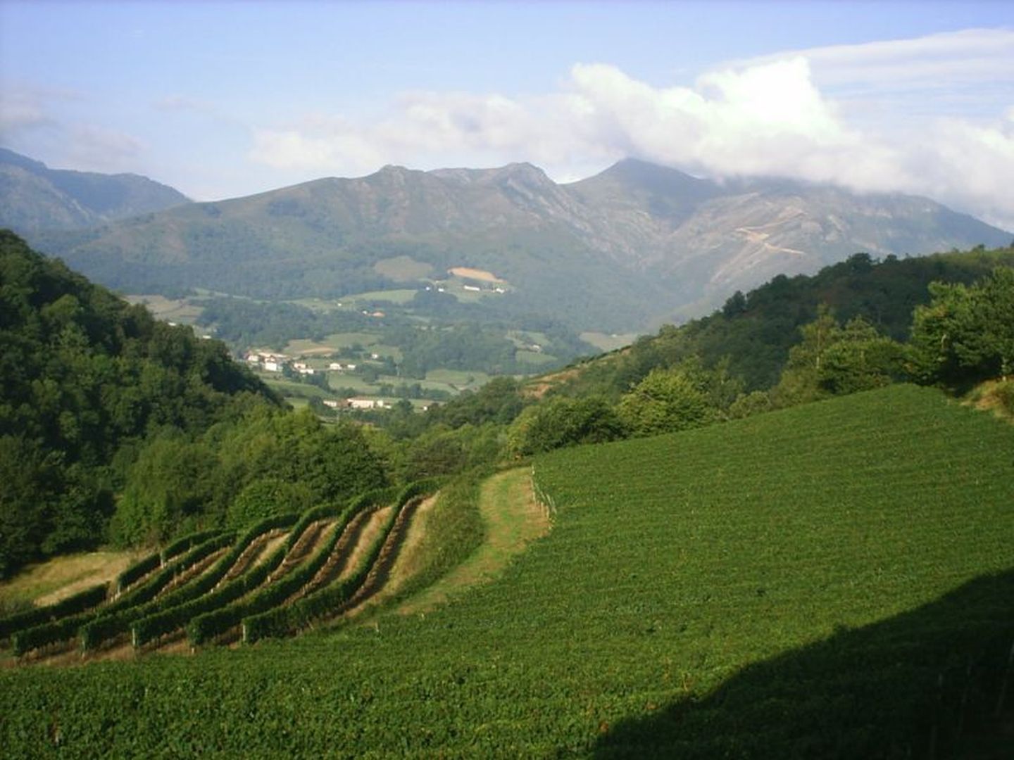 Au coeur de la montagne basque, notre domaine se situe sur la route entre Saint Jean Pied de Port et Saint Etienne de Baïgorry, dans une petite vallée au pied du mont Jara.