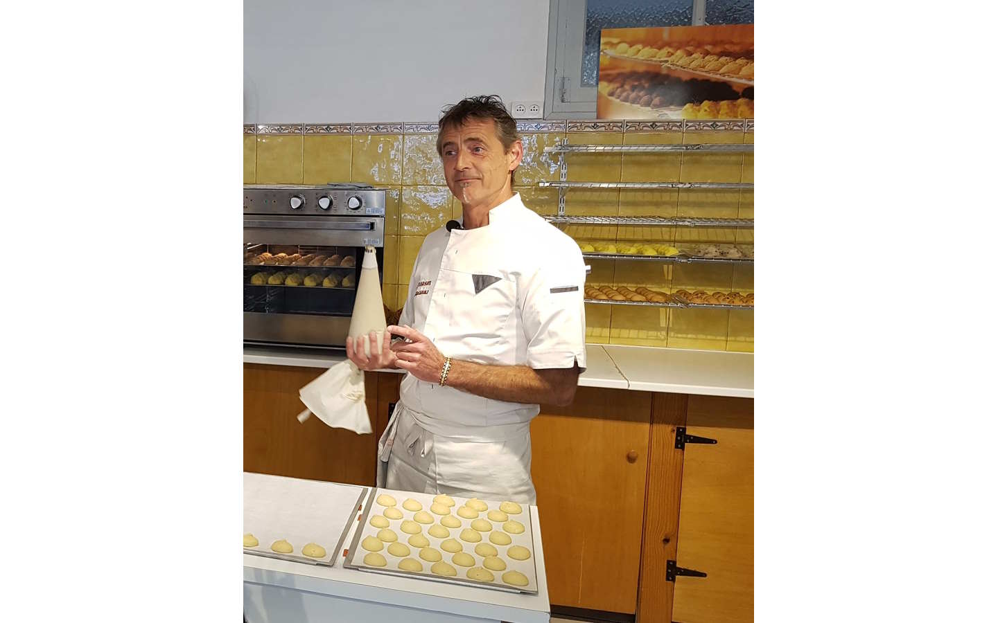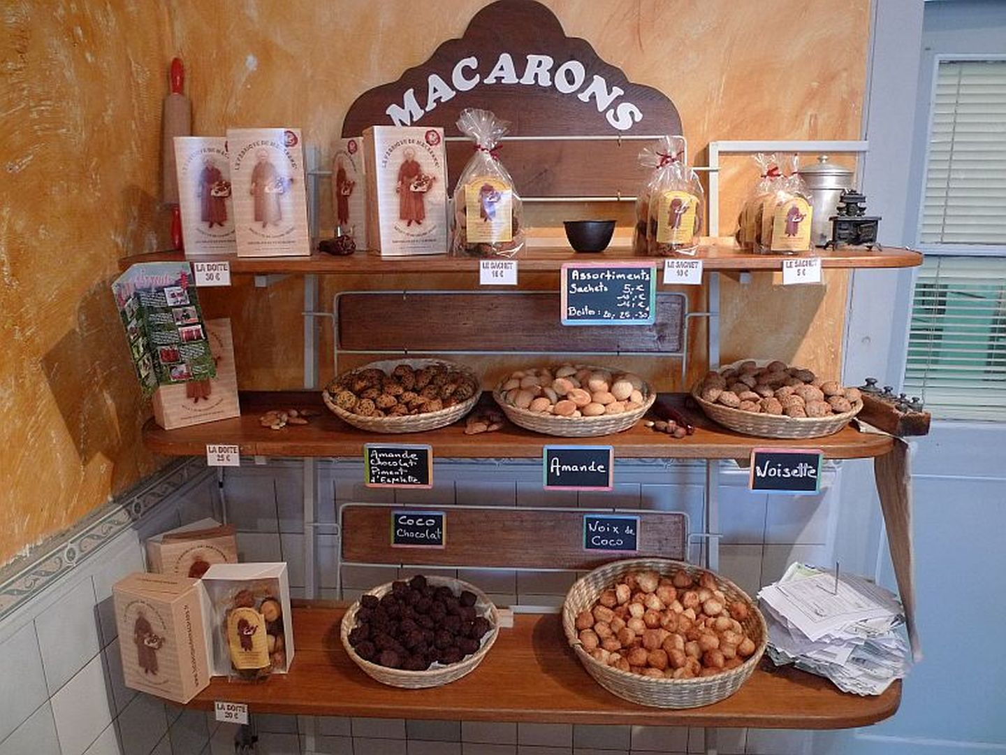 Dans l'atelier : explications sur la fabrication artisanale de macarons. Vente sur place.