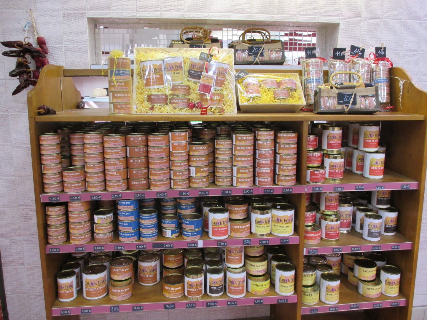 Elle est réputée pour sa fabrication artisanale, conserves, foies gras et paniers gastronomiques. Parmi les spécialités de la maison, on trouve le pavé des remparts, l'andouille béarnaise, le saucisson, le boudin béarnais, le pavé du berger et le jambon du pays. |