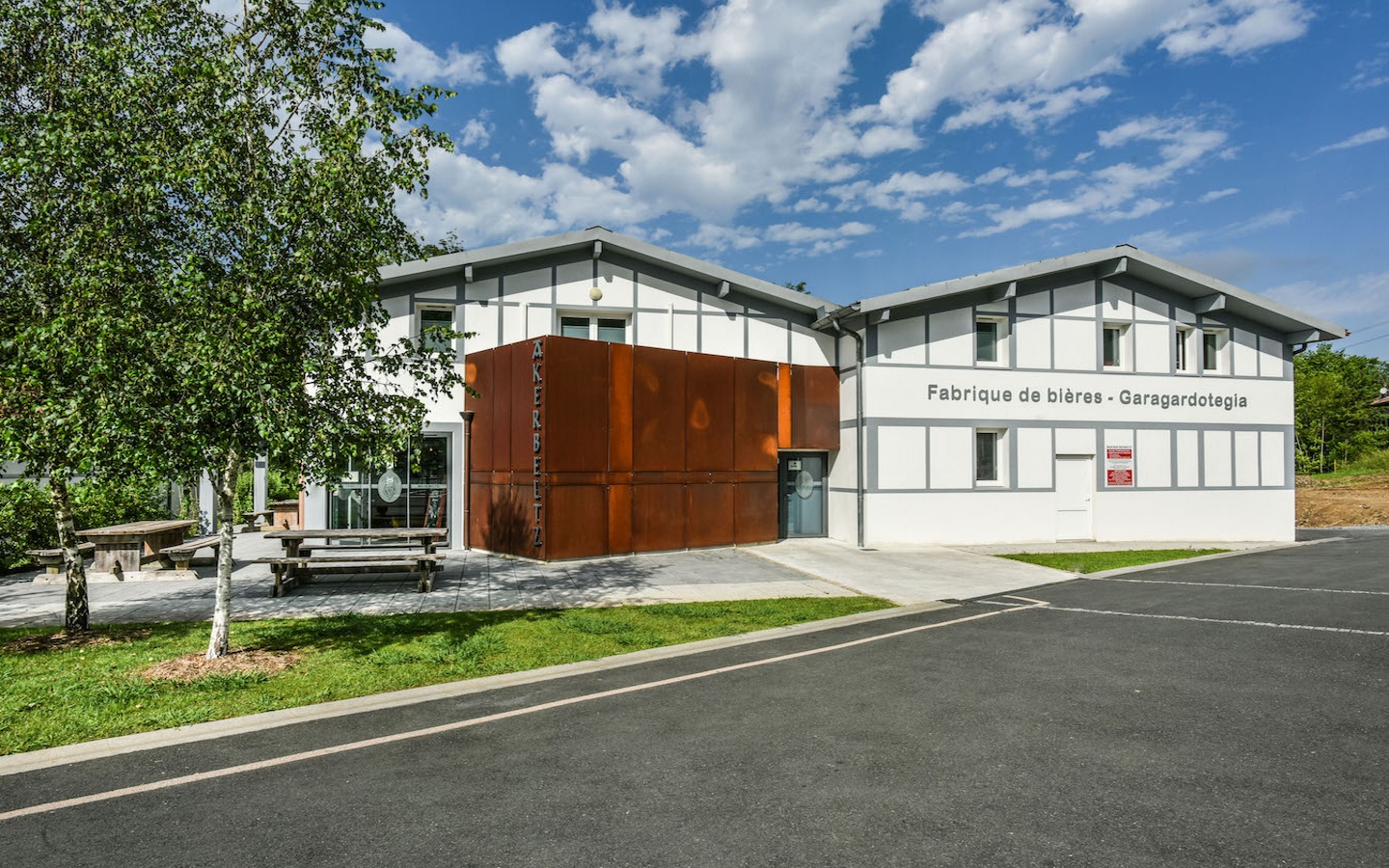 Un bâtiment de 800 m² construit dans le style traditionnel basque et équipé de matériel de dernière technologie est implanté depuis le début de lannée 2012 dans la zone artisanale Larre-Lore parmi dautres artisans et producteurs du territoire. Un emplacement de premier choix pour la fabrique de bières Akerbeltz. Akerbeltz gère la totalité de la chaîne de production de ses bières : de la réception des matières primaires et ingrédients jusqu'au conditionnement, l'expédition, la vente sur place et à emporter. |