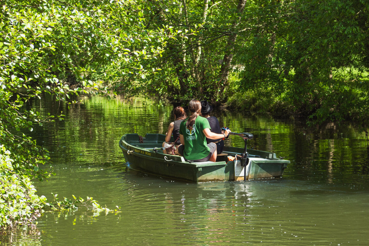 Promenade en barque à rames ou moteur électrique sur le bief de la Maison de la Dronne.