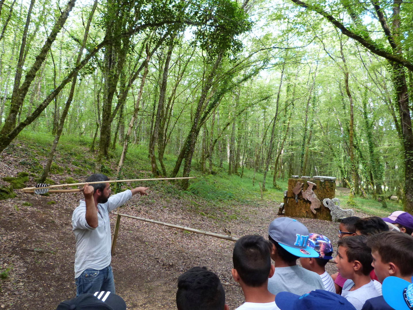La visite se poursuit en bord de Vézère par la découverte d'authentiques abris sous-roche occupés par les hommes dès la Préhistoire. Les plus: Des parcours dans les arbres sont proposés à toute la famille. Parcours enfants et famille accessibles dès 3 ans, équipés de lignes de vie continues afin d'être 100% en sécurité. Formule parc + parcours dans les arbres En juillet/août nous organisons des parcours dans les arbres nocturnes sur réservation. Animations préhistoire en juillet-août et le 31 octobre, soirée Halloween dans le parc. |