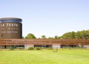 A l'entrée de la ville, le long de la route de Bordeaux, le stade nautique de La Teste de Buch s'inscrit en fond de scène, à la lisière de la forêt. Encadré par les pins et la verdure, il s'intègre parfaitement à l'environnement de la plaine Gilbert Moga, véritable campus des sports.