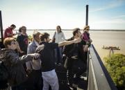 L'équipe de la Compagnie des 2 rives vous accueille à bord d'une grande vedette spacieuse pour effectuer d'agréables sorties sur l'Estuaire de la Gironde seul, en famille ou en groupe. Le bateau a une salle intérieure et un solarium pour profiter au mieux du paysage. Un bateau d'exception qui permet d'effectuer tous types d'excursions : de la simple balade commentée, en passant par les balades avec buffet ou repas, dégustations de vins, soirée avec animations musicales, tout peut être envisageable.