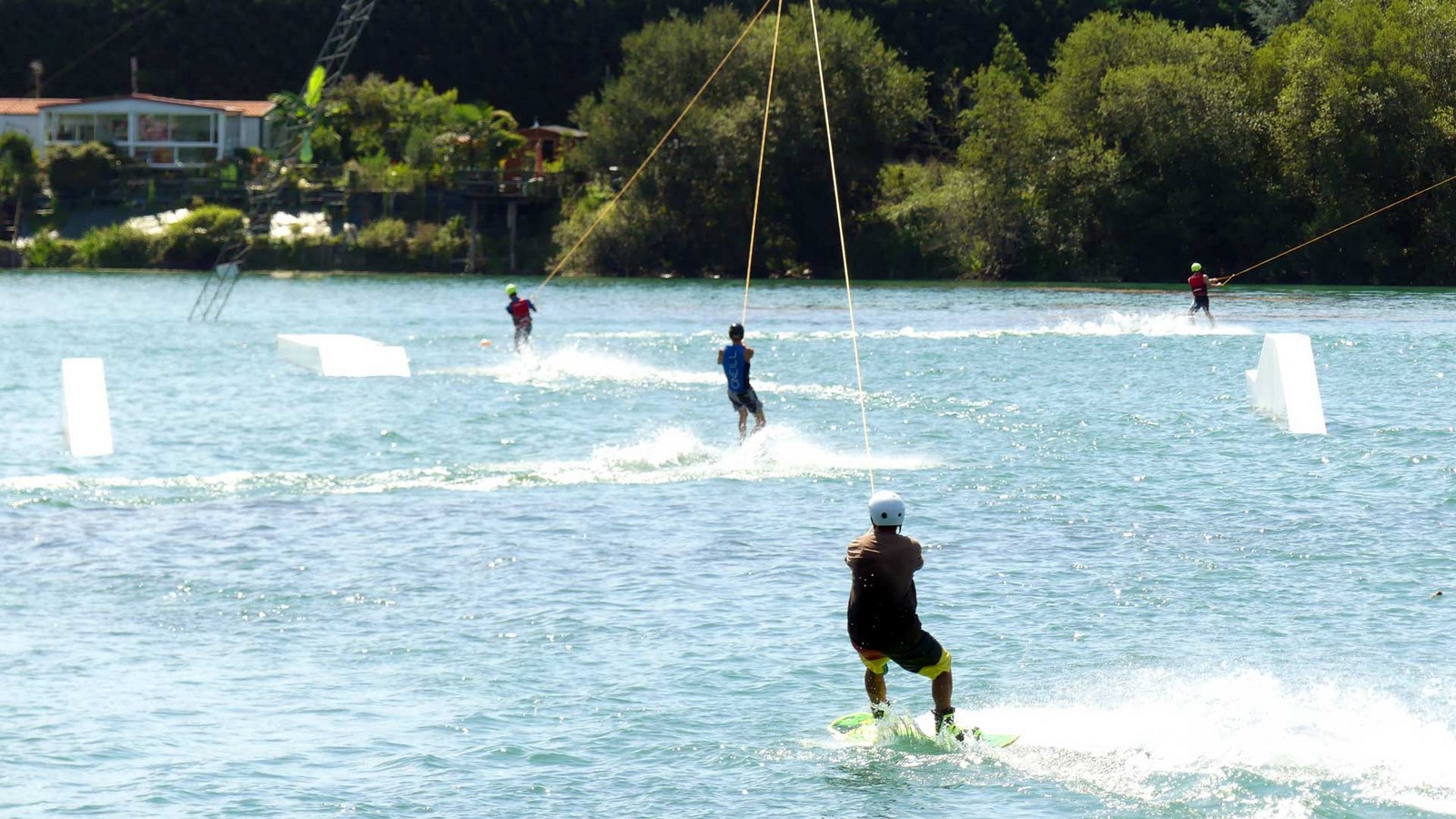 Familles, vous trouvez ici une plage de sable, des toboggans aquatiques et une nouvelle structure de parcours aquatique. Pratiquez le téléski, (wakeboard, kneeboard, snowboard) ou plus calmement, la pêche (carpes, brochets, esturgeons, blackbass, gardons). Pour vous restaurer, le site est équipé de tables de pique-nique, un restaurant et un snack. Hors saison, vous pouvez venir vous promener autour du lac. |