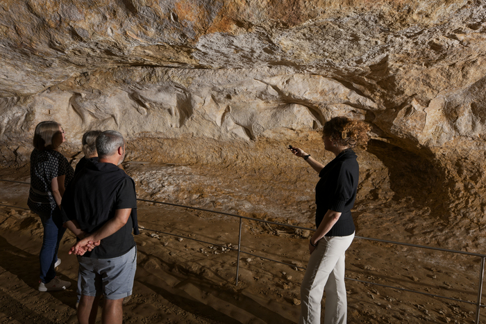 Cet abri préhistorique magdalénien se distingue par la vigueur et la profondeur de ses reliefs exécutés au pic de silex : l'artiste creuse la roche calcaire en effectuant des percussions, la figure ainsi détourée paraît « sortir » de la paroi. Un remarquable bestiaire sculpté occupe ainsi 13 des 15 mètres de l'abri. S’y alignent quelques bisons, des animaux parfois difficiles à identifier (bouquetins, ours, rennes, …) et principalement des chevaux. Le bâtiment d'accueil, édifié avec soin par Jean Archambeau, dernier propriétaire privé, préserve remarquablement le site archéologique et son décor sculpté tout en s'intégrant parfaitement dans son environnement naturel. Vous y circulez dans des salles explicatives : différentes techniques de sculpture bas-relief, haut-relief et rondes bosses, vision globale de l'art et des Vénus de la préhistoire, outils retrouvés dans l'abri. |