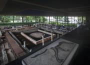 En y entrant, vous profitez d’une vue spectaculaire sur les vestiges. Conçues comme deux balcons superposés, les salles d'exposition permanente dominent en effet le site, tout comme les passerelles qui vous permettent d’observer l’élévation des murs conservés (un mètre environ) ainsi que les exceptionnelles peintures murales. Deux circuits thématiques, animés d’écrans numériques, vous sont proposés : « ville et vie publique » et « maison et vie privée », ainsi qu’un film avec des images 3D présentant le site archéologique de Vesunna. |