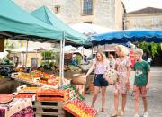 À 15 km au nord-est de la bastide de Villéréal et à 45 km au sud-ouest de Bergerac, il faut découvrir Monpazier, montis paserii qui signifie mont de la paix. Cette bastide classée Grand site National et Plus Beau Village de France a conservé presque intacts son aspect et ses dimensions d'origine : son plan aux rues orthogonales, la place centrale avec son puits, sa halle et ses maisons à cornières édifiées du XIIIème au XVIIème siècle, dans un angle l’église (XIIIème / XIVème siècles) et, au nord et au sud, deux tours-portes vestiges du rempart.
