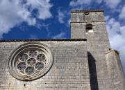 Eglise romane de plan rectangulaire, reconstruite au XIIIe siècle selon les plans de l’abbaye de Cluny dont elle dépendait. A demi détruite aux XIVe et XVe siècles, elle devint en 1555 une église collégiale avec un prévôt et 24 chanoines. Une rose composée de sept roses accolées orne le mur occidental au-dessus du portail. Classée Monument Historique en 1923.