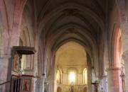 De l'édifice primitif édifié au XI ème siècle, il subsiste l'abside. Les nefs ont été incendiées au XVI ème siècle lors des guerres de religion, puis reconstruites dans un style gothique.L'église possède un chevet roman. Le maître-autel des frères Mazetti date du XVIII ème siècle.