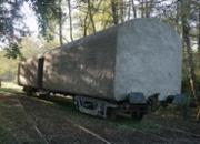 Stéphanie Cherpin a choisi d’utiliser un ancien wagon de la ligne de chemin de fer qui reliait la gare de Sabres à Labouheyre, qu’elle nous propose désormais abandonné au milieu de la végétation. Si ce wagon a perdu à jamais sa fonction, il garde en mémoire l’empreinte d’une activité humaine forte. Il s’impose avec tout son potentiel comme l’objet, l’échelle et le matériau principal d’une sculpture fossilisée, colonisée par une grotte artificielle. Il ne s’agit pas d’élever un monument ou de magnifier une ruine, mais de raviver un signe vivant qui marque cette union entre l’environnement naturel et les productions techniques, et restera forcément visible malgré un retour progressif mais irrépressible à un état sauvage. |
