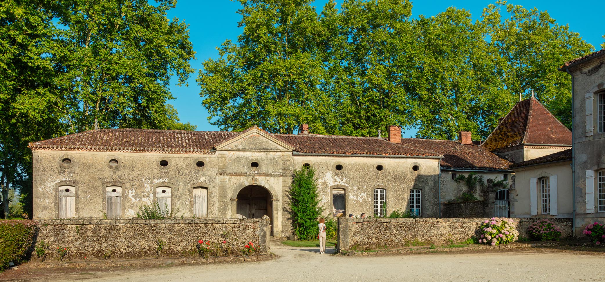« Simple, commode, belle », telle est décrite la « demeure sur le pré » que Victor Louis, architecte du Grand Théâtre de Bordeaux, livre en 1764 à la famille de Bouglon. Elle devient le berceau d’une longue et glorieuse lignée de militaires. Depuis l’auberge où il descend, fuyant Paris et ses démons, l’écrivain Barbey d’Aurevilly guette la Baronne, son amour impossible, son « Ange blanc ». Dès la grille d’entrée ouvragée, une atmosphère romantique flotte encore sur le château : escalier monumental, collections de meubles anciens, belles cheminées… La visite se prolonge dans les chais où sommeillent de vieux armagnacs. |