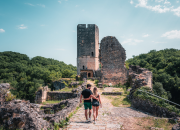 La découverte de l’accès original au château et l’ascension du donjon haut de près de 21 m culminant à 70 m au-dessus du sol méritent une visite. Visite qui peut, en été, prendre la forme d’un jeu de piste en famille, d’une descente en rappel du donjon, d’une matinée contée ou encore d’un atelier taille de pierre : un atout de plus au charme de Gavaudun, petit village au cœur d’une vallée préservée idéalement située à 10 km de la bastide de Monflanquin et 10 km d’une autre forteresse féodale, Bonaguil. |