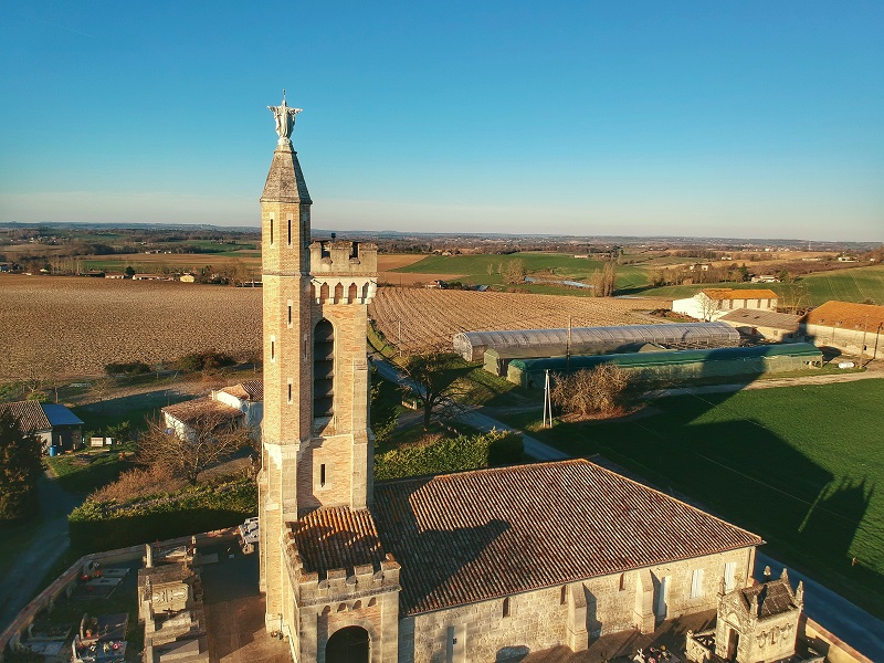 À 4 km au sud-ouest de la bastide de Miramont-de-Guyenne, quittez la route de Marmande pour découvrir un édifice insolite, l’église de Peyrières. Son étrange clocher flanqué d’une tour à créneaux et surmonté d'une statue du Sacré-Cœur se voit de loin, vous incitant à vous rapprocher pour en savoir plus. Restaurée au XIXème, l'église Saint-Pierre date du XVIème siècle. Vers 1896, c’est la générosité d'une habitante de la commune qui a permis, outre sa restauration, la construction de ce clocher carré qui est la reproduction de la citadelle de Jérusalem.