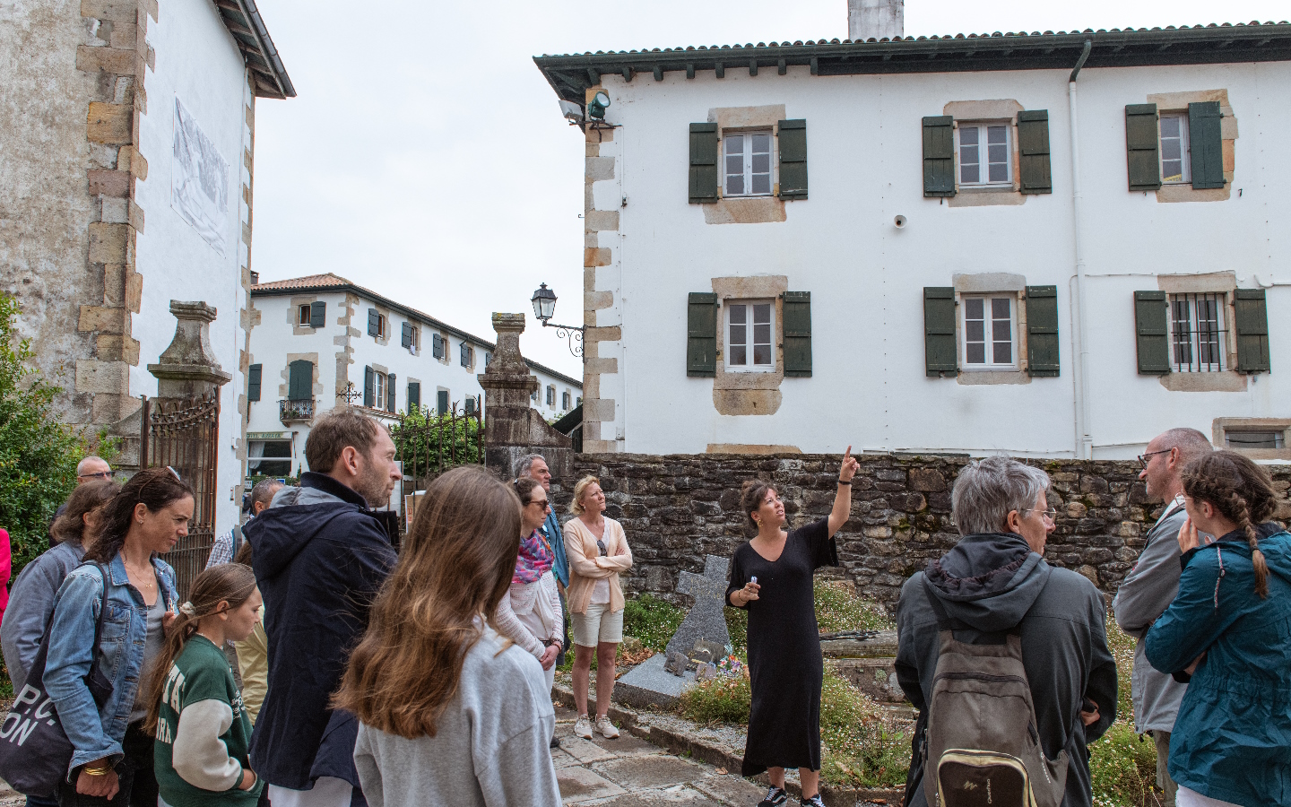 Visite de l’église, du fronton, des maisons labourdines, de la voie médiévale et ses fameux oratoires. Evocation du patrimoine, de l'économique et des traditions : pelote et force basque, fêtes et chasse à la palombe. Ses personnages célèbres : E de Montijo, Napoléon III, W. Churchill, P. Loti, L. Mariano, le curé écrivain P. Axular et l’antropologue Barandiaran. Visite de l’exposition sur la pelote basque avec explications