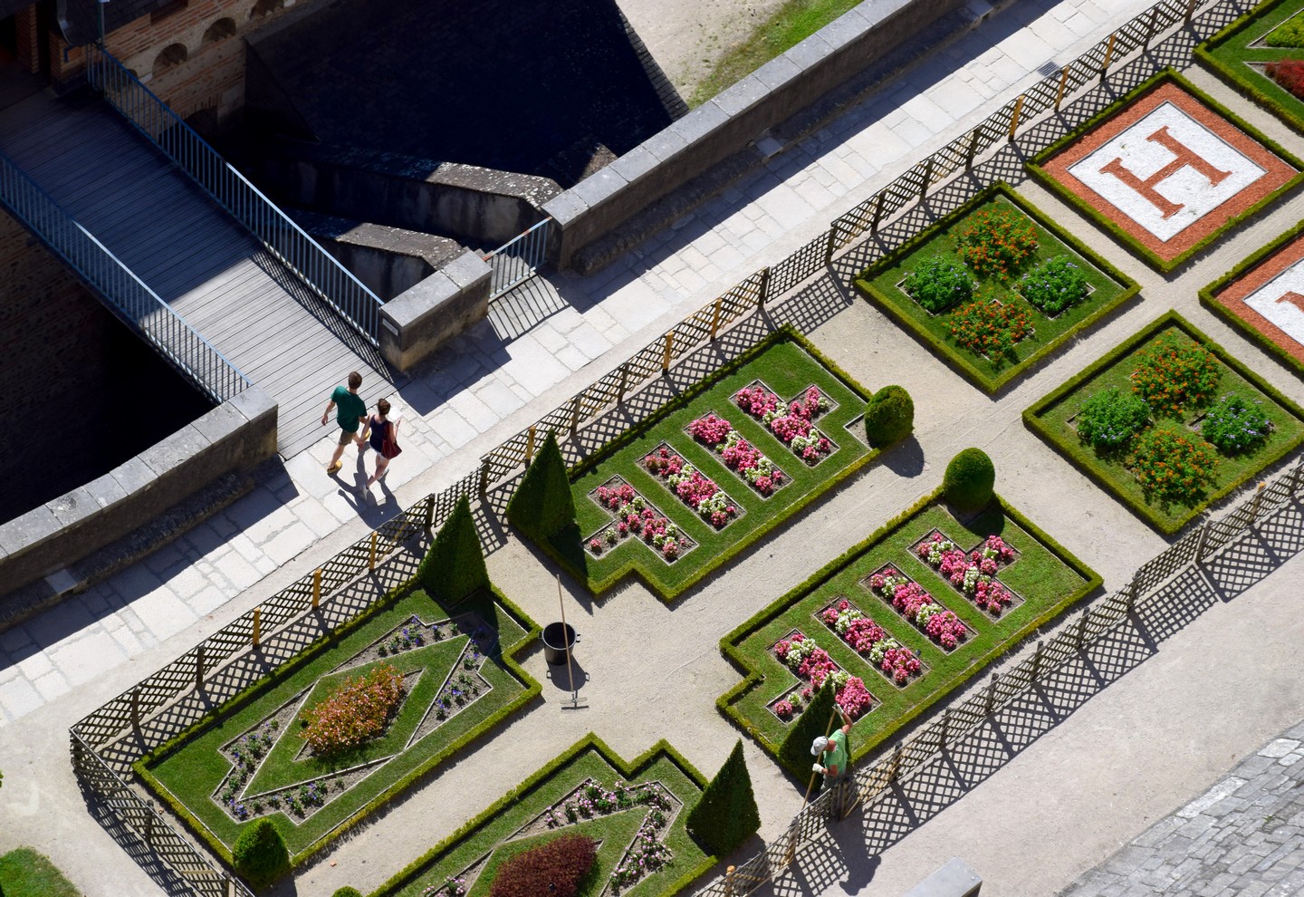 À travers les jardins Renaissance du château, on arrive devant la tour de la Monnaie.