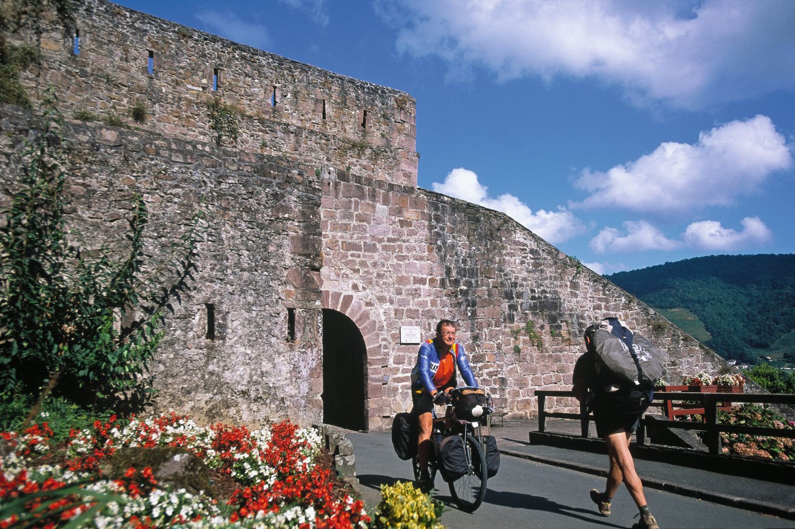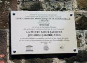 Classée au Patrimoine Mondial de l’Humanité par l’Unesco en 1998, la porte Sait Jacques est l’entrée historique des pèlerins en route vers Compostelle qui, venant du quartier de la Madeleine de St-Jean-le-Vieux, traversaient Saint-Jean-Pied-de-Port en direction de Roncevaux. Elle offre un joli coup d’œil sur la colline de l’Arradoy, autrefois carrières de pierres et aujourd’hui plantée en vignes sous l’appellation Irouléguy. Un rapide coup d’œil sur un complexe sportif de premier ordre puis devant le Jaï Alaï, une grande bâtisse en contrebas où l’on joue à la Cesta Punta (Pelote Basque), se trouve le bas-relief de Juan de Huarte, médecin philosophe précurseur de l’orientation professionnelle. |