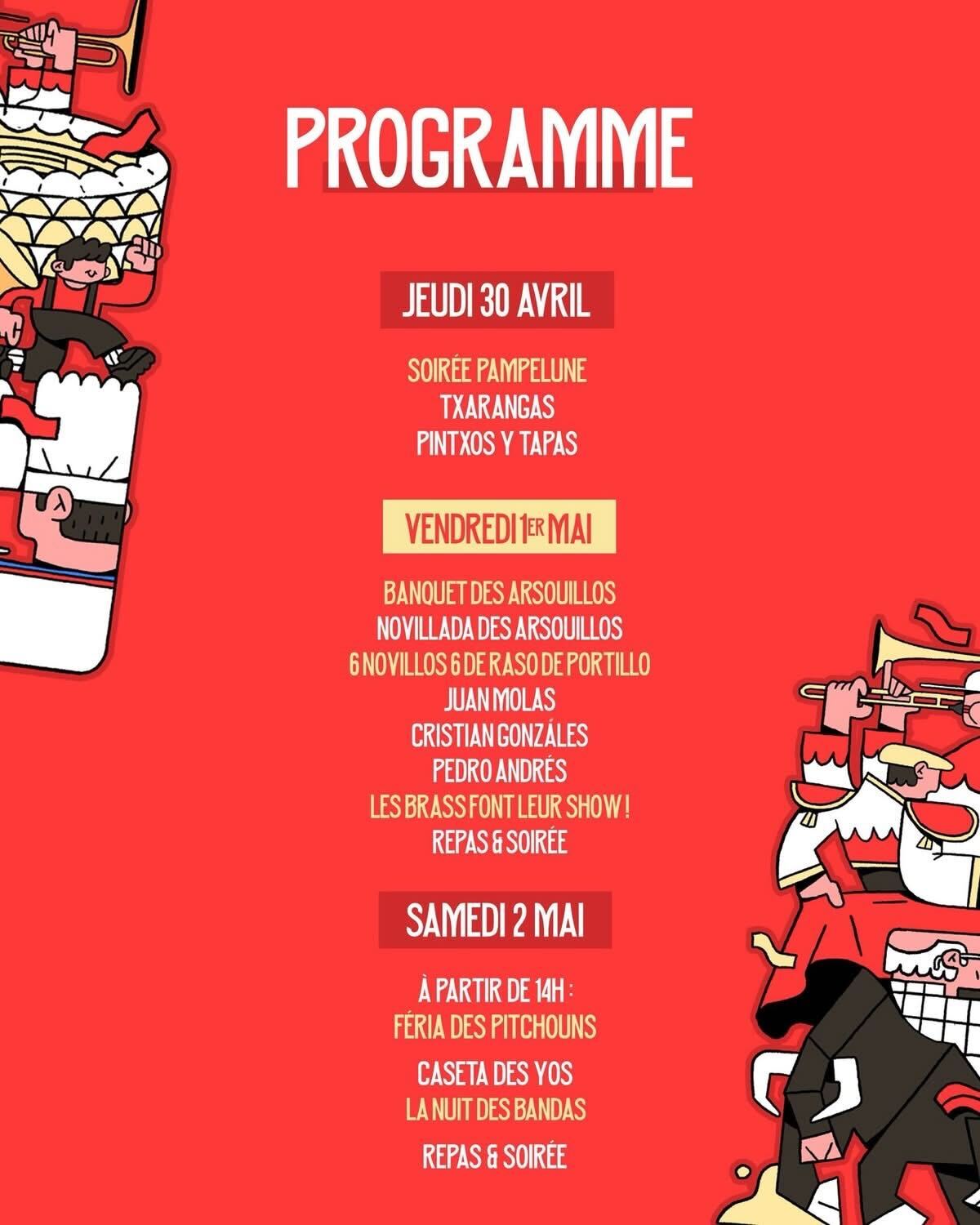 | 38e FÊTE DES ARSOUILLOS Du jeudi 30 avril 2026 au samedi 2 mai 2026 40800 AIRE-SUR-L'ADOUR Tél : +33 5 58 71 64 70
