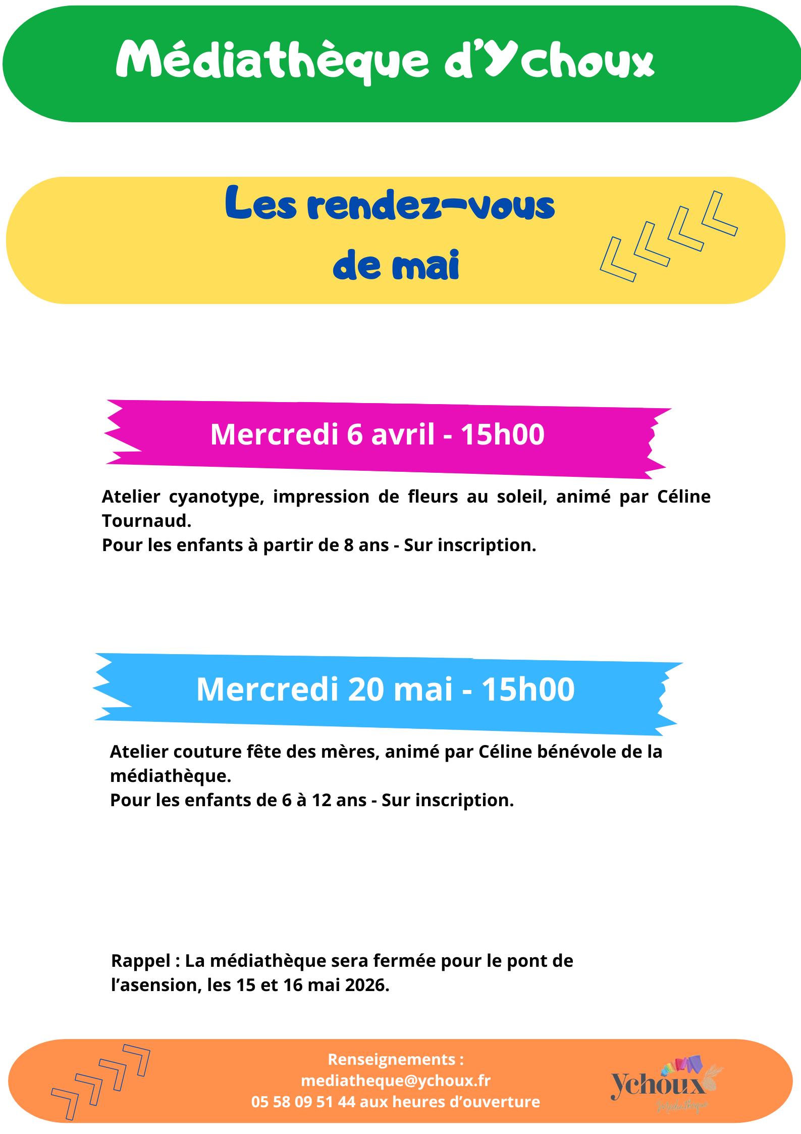 | Les rendez-vous de mai Le mercredi 6 mai 2026 Le mercredi 20 mai 2026 40160 YCHOUX Tél : +33 5 58 09 51 44