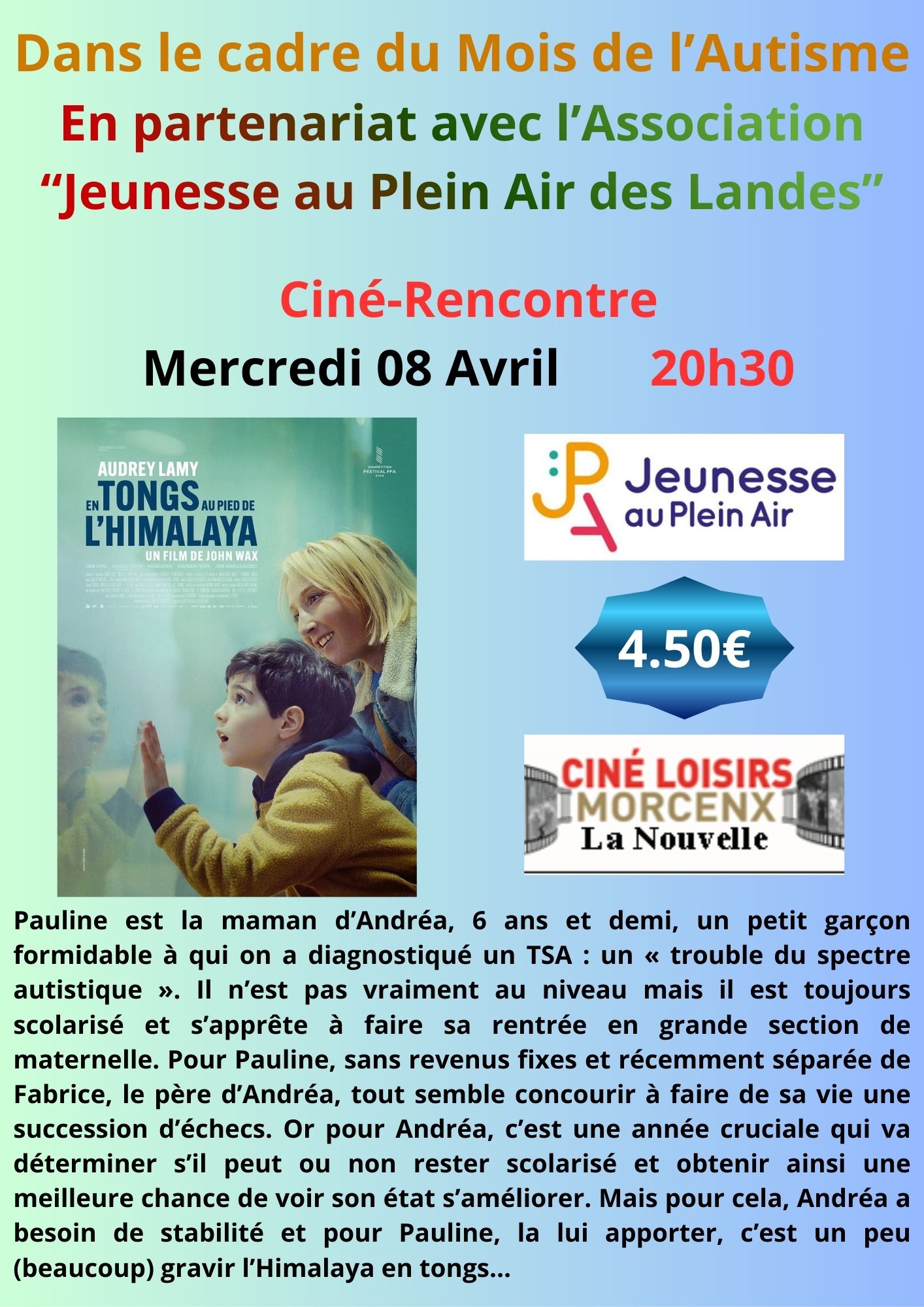 | Ciné-Rencontre - Cinéloisirs - Jeunesse au Plein air des Landes Le mercredi 8 avril 2026 40110 MORCENX-LA-NOUVELLE ![]() |