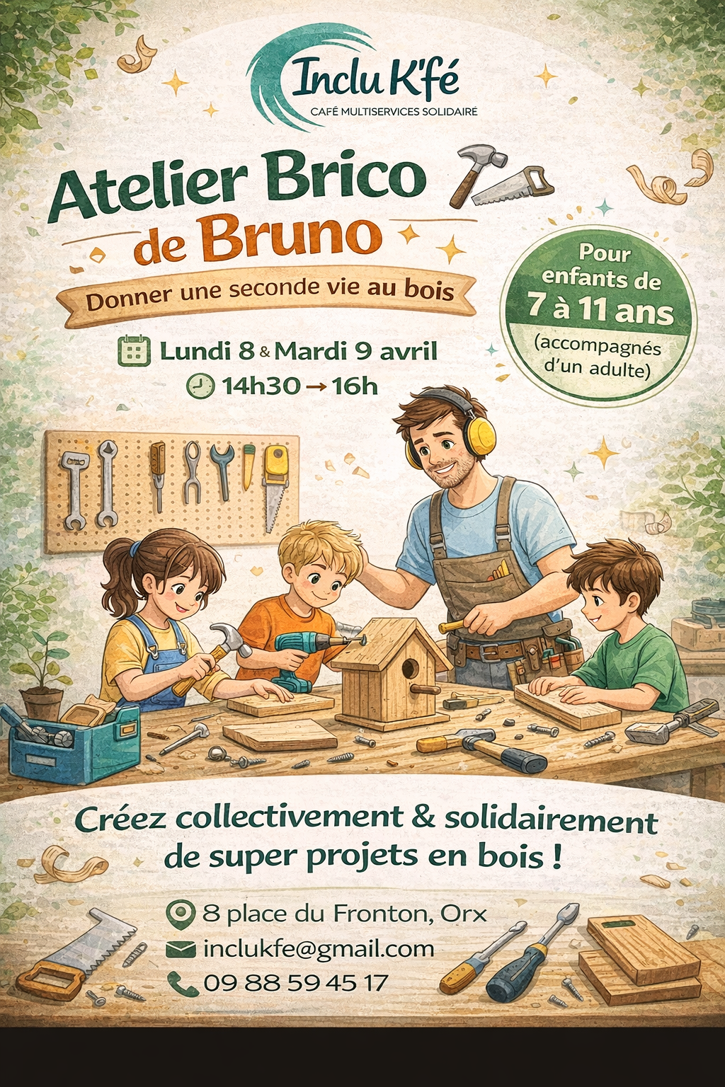 | L'atelier "Brico" de Bruno à l'Inclu K'fé Du mercredi 8 avril 2026 au jeudi 9 avril 2026 40230 ORX ![]() |