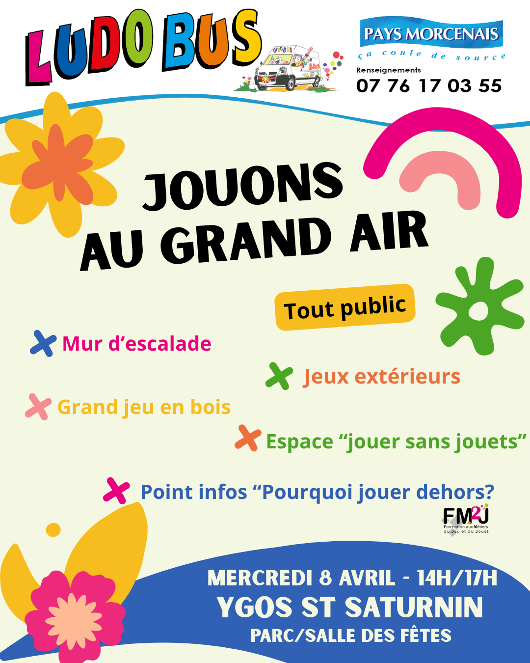 | Ludobus - "Jouons au grand air" Le mercredi 8 avril 2026 40110 YGOS-SAINT-SATURNIN Tél : +33 7 76 17 03 55