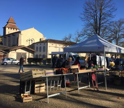 Tous les jeudis matin, de fidèles producteurs locaux installent leurs étals à l'entrée de la bastide. Ils sont peu nombreux, primeurs, boucher, fromager, produits locaux ... mais leurs produits sont de qualité et leur accueil fort sympathique.