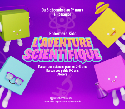 Pour la première fois, les événements Éphémère se déclinent en version Kids… Une aventure unique dans une maison des sciences, avec 4 espaces thématiques, un café/snack boutique souvenirs, des ateliers, des expériences et surtout… plein de découvertes à partager en famille. 458 avenue de Gaujacq, 40150 Soorts-Hossegor Du 6 décembre au 1er mars Entrées toutes les heures (durée conseillée 2-3 heures) Pour les enfants de 0 à 12 ans (avec créneaux dédiés aux 0-3 ans) Billetterie déjà ouverte |