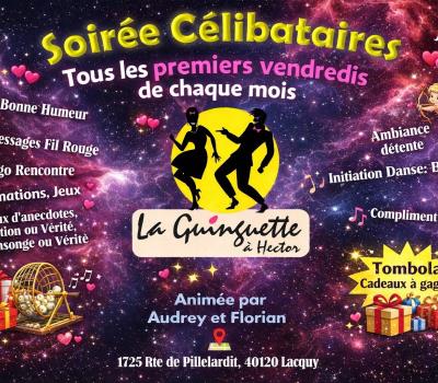 Amis célibataires, chaque 1er vendredi du mois prenez la direction de la Guinguette à Hector pour une soirée qui vous est consacrée et qui sait, peut-être rencontrer la personne qui partagera votre vie !